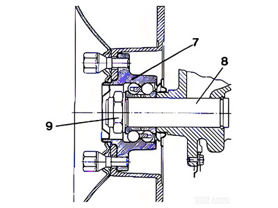 In the diagram: ⑦ Gen2 wheel hub bearing, ⑧ Shaft , ⑨ Lock nut