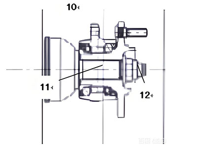 In the diagram: ⑩ Non-shaft riveted Gen3 wheel hub bearing, ⑪ Shaft or splined shaft, ⑫ Lock nut