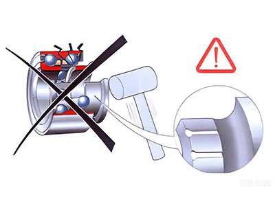 Striking the end face of the ring with a hammer or other tools will damage the steel balls and raceway, reduce the life or even lose the effectiveness of the bearing. the sharp tools touch the sealing end face of the bearing will scratch the sealing ring, may cause grease leakage, and eventually shorten the life of the bearing.